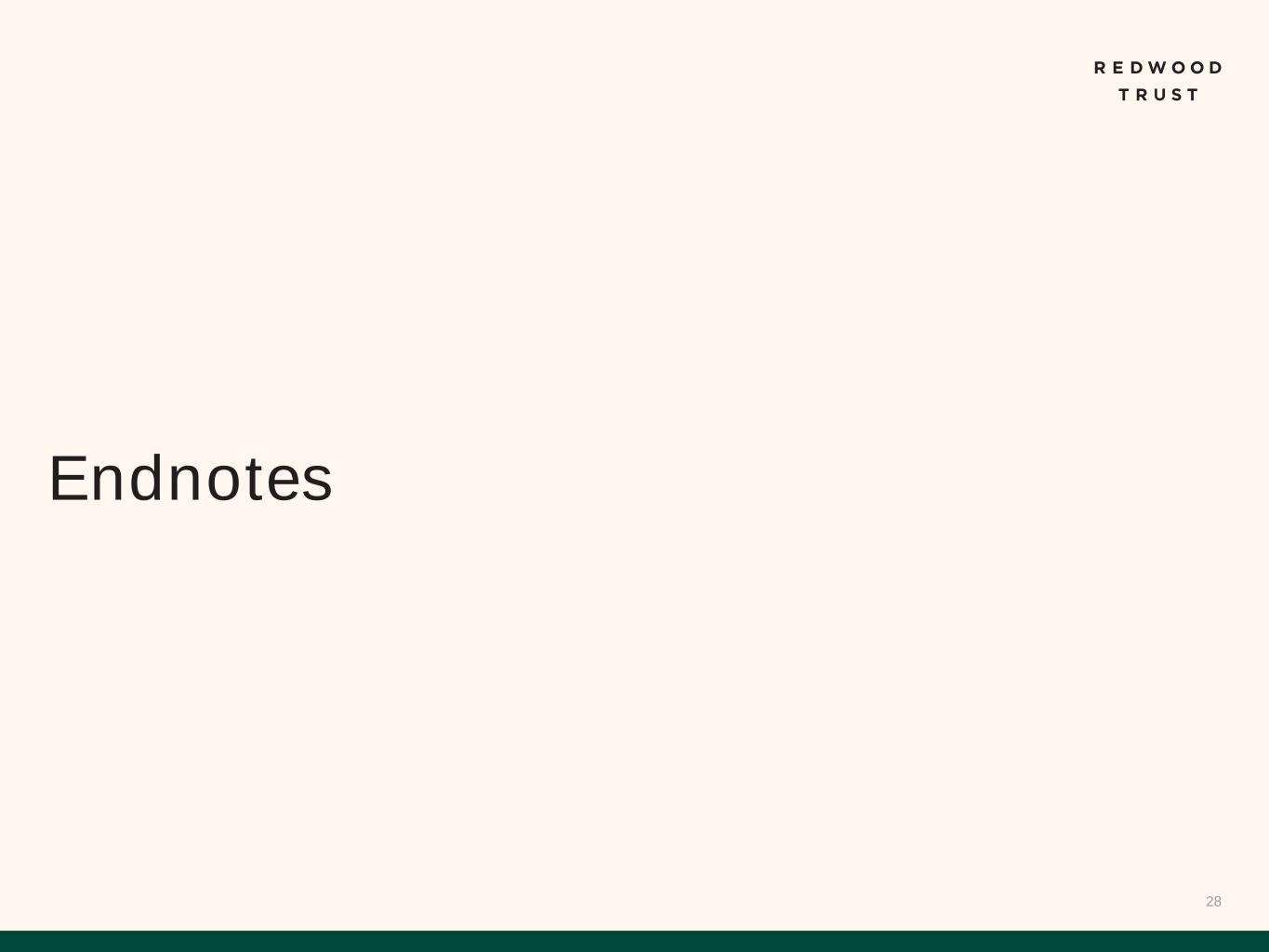 11 Detailed Endnotes are included at the end of this presentation. Housing Policy and Regulatory Reform Redwood’s business model is well-positioned to respond to potential changes to housing policy and regulations $0 $400,000 $800,000 $0 $30,000 $60,000 $90,000 1 9 8 4 1 9 8 7 1 9 9 0 1 9 9 3 1 9 9 6 1 9 9 9 2 0 0 2 2 0 0 5 2 0 0 8 2 0 1 1 2 0 1 4 2 0 1 7 2 0 2 0 2 0 2 3 L o a n L im it ( S in g le F a m ily ) M e d ia n H o u s e h o ld I n c o m e U.S. Median Household Income Loan Limit (Single Family) In the last five years, loan limits have increased 60% compared to only a 10% increase in household income Household Income vs. Loan Limit(1) GSEs Redwood Product Agency Mortgages Non-Agency Mortgages No Direct Customer Touchpoints Underwriting Guidelines Standard Buy-Box Standard Buy-Box with Flexibility Capital Provider to the Housing Market Permanent Capital Vehicle Securitization Capabilities Mission to Support Housing Accessibility Robust Financing Capabilities Redwood’s GSE-Style Offerings Our operating model is primed to benefit from potential narrowing of GSE mandates Key areas of potential housing policy and regulatory reform: ▪ Rationalization of GSE Footprint ▪ Loan Limits ▪ Product Suite ▪ Refocus GSEs on Core Mission ▪ Evolving Mandate of Consumer Financial Protection Bureau (“CFPB”)